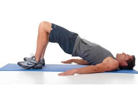 背桥练习:平躺,双脚、肩膀、头放在床上,腹部向上抬起,保持至最高点30秒,慢慢降低并重复 5-10 次为一组。